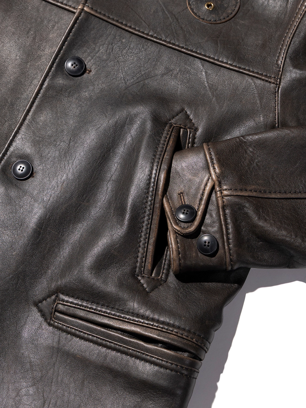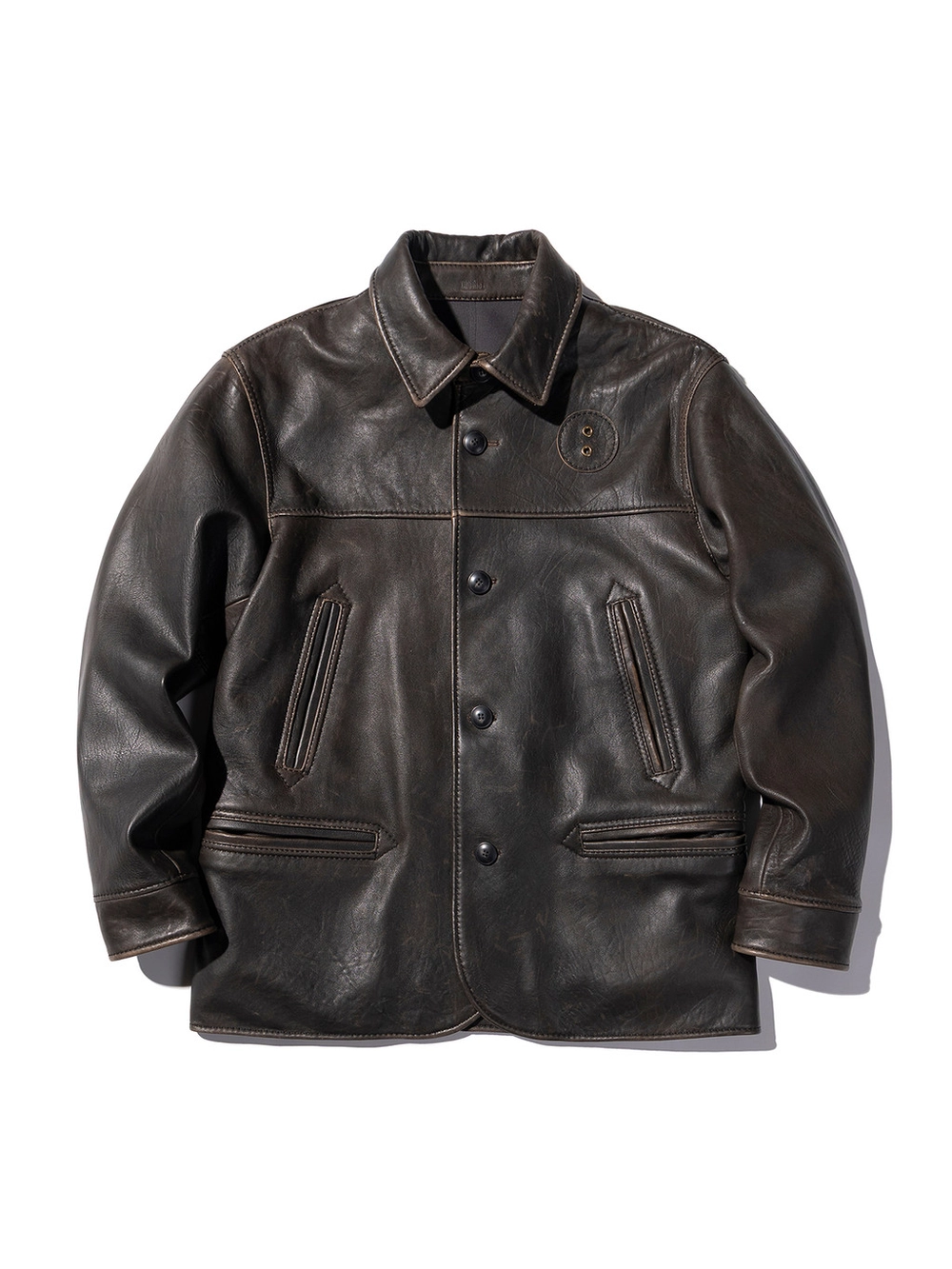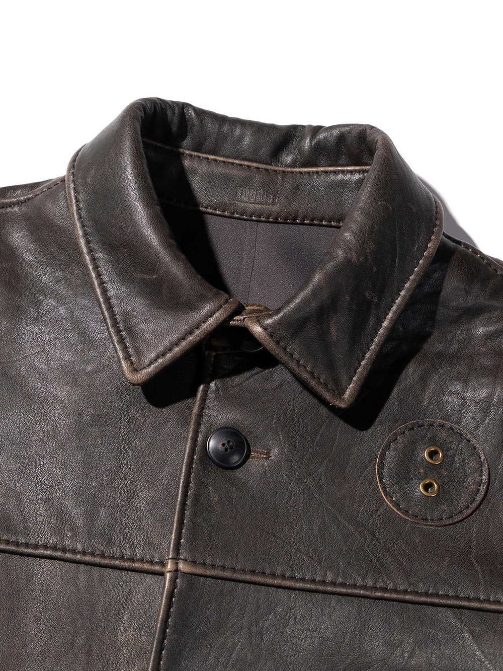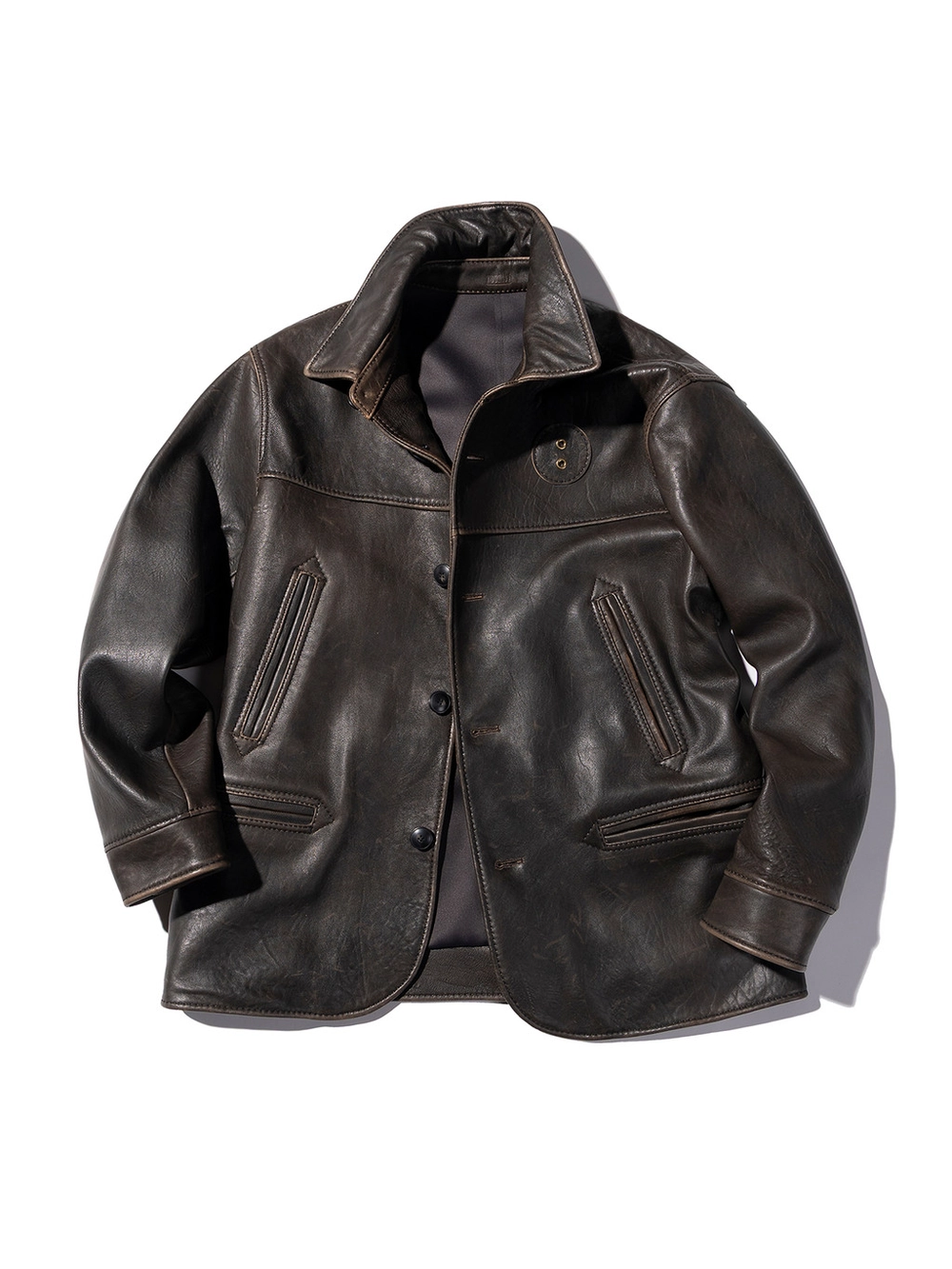 거친 환경에서 선별된 최고급 램스킨을 사용해 제작된 이 가죽은 매우 치밀한 섬유 구조를 지니며, 장인의 손길로 완성된 자연스러운 디스트레스드(빈티지) 마감이 특징입니다.